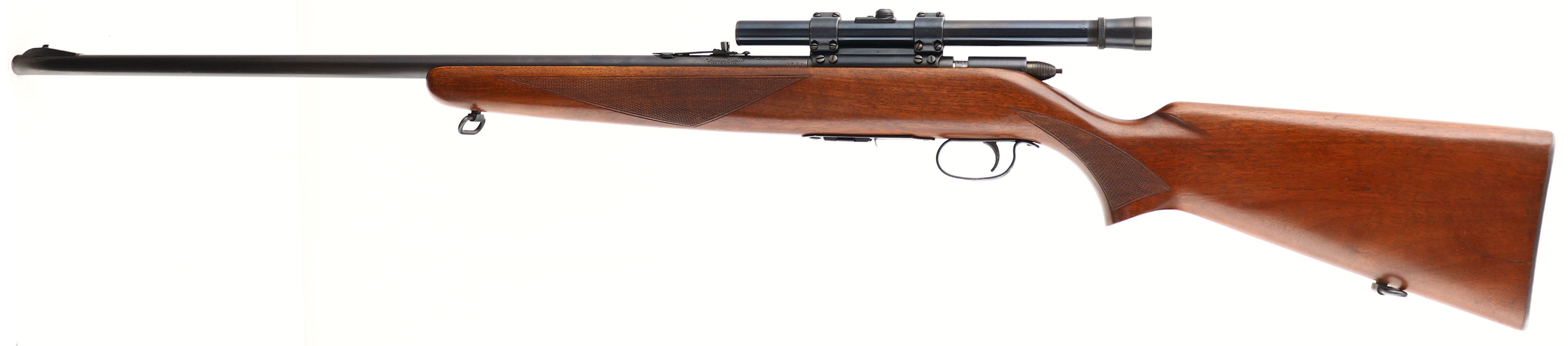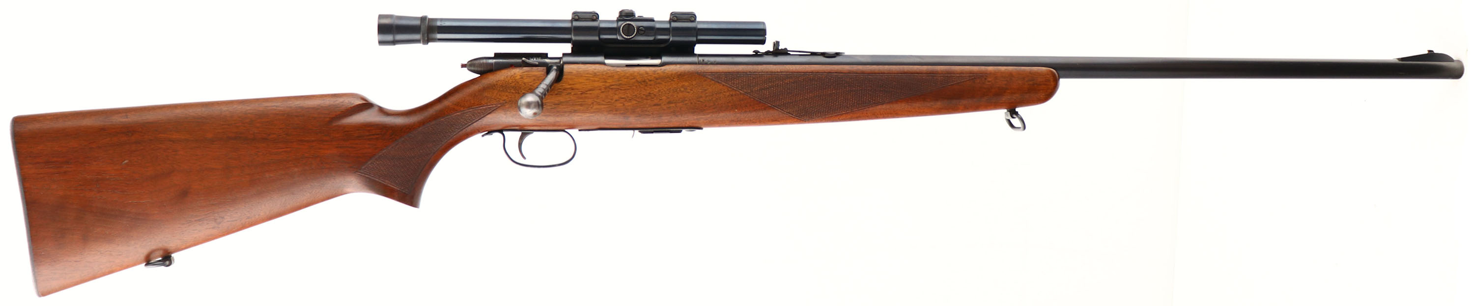 Remington Model 513 Matchmaster, CAL: 22 LR, MFG: 1940-68, SN: , Bolt Action Rifle, 27'' barrel. The original checkered & flat pistol grip wood stock is excellent, with a few minor scrapes, scratches & contusions to the original finish. The original metal blue finish on the barrel & receiver is 90%. Bore is excellent. The receiver is fitted with a Weaver B4 scope, while the barrel carries an updated Marble's adjustable rear sight & a ramp blade front sights. The stock carries the original Remington checkered metal buttplate. Sling loops. Original detachable mag. FFL or