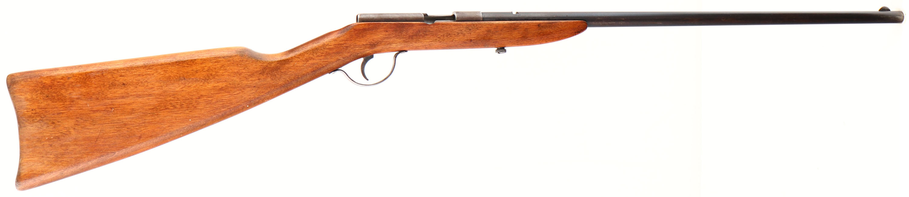 Page Lewis Arms Co., Model ''D'' Reliance, CAL: .22 LR. MFG: circa 1923-28, SN: NONE, Bolt rifle, 20'' Round barrel. The flat board straight grip stock is excellent & solid, with minor handling marks to the added layer of finish over the original finish. The metal blue finish on the barrel rates 60%, while the receiver has worn gun metal gray. Bore is very good. The barrel has an open rear dovetail & half moon front sights. Fabricated without a buttplate. The rifle is missing the bolt & is therefore is being sold ''AS IS'', with no returns. FFL or C&R Req. - Value: 20 to 60