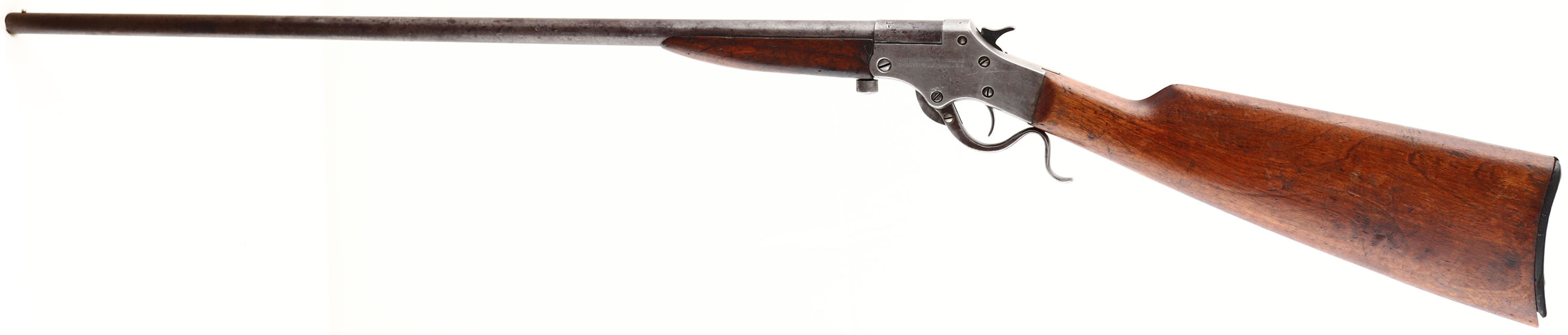 J. Stevens Arms & Tool Co. Model 101, .44 Shot, MFG: 1912-16, SN: 756, Falling block takedown. 26'' barrel. The straight grip wood stock is very good & solid. Stock & forearm have many minor scratches & dings to the remains of the orginal finish. Metal blue finish has worn to gun metal gray, with a spotty thin brown patina on the barrel. The Bore is very good. Original bead front sight. Original buttplate is broken at the toe & missing the bottom approximate 1/2''. Originally advertized as ''a splendid light gun for birds at 20 to 25 yards''. FFL or C&R Req. - Value: 150 to 400