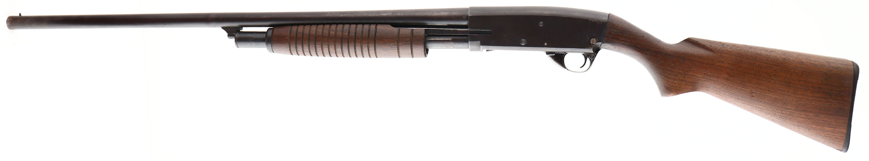 Stevens (Savage), Model 77A, CAL: 12 GA, MFG: 1949, SN: none, Pump Action Shotgun, Choke: Mod, 2 3/4'' chamber, 28'' barrel. The pistol grip wood stocks are original with nicks & dings. The metal blue finish rates 70% on barrel, 80% on receiver & 60% on tube, Bore is very good. Stock carries a black butt plate, 14 1/8'' LOP, the pump lock does not always engage when the pump is pushed forward & cocked, & will pump back without pressing the pump release button, on top of missing a screw on the right side of the receiver, will need to see a gunsmith. This gun with its problems & missing parts is being sold AS IS with NO RETURNS ACCEPTED. FFL Req. - Value: 100 to 200
