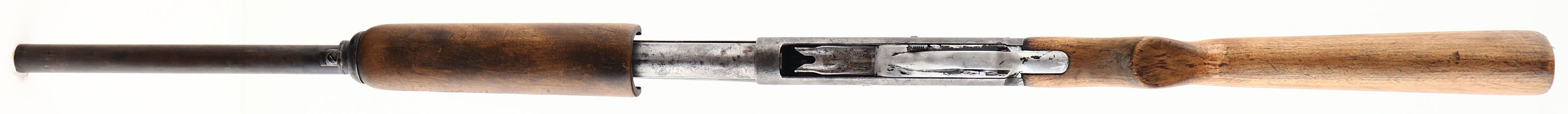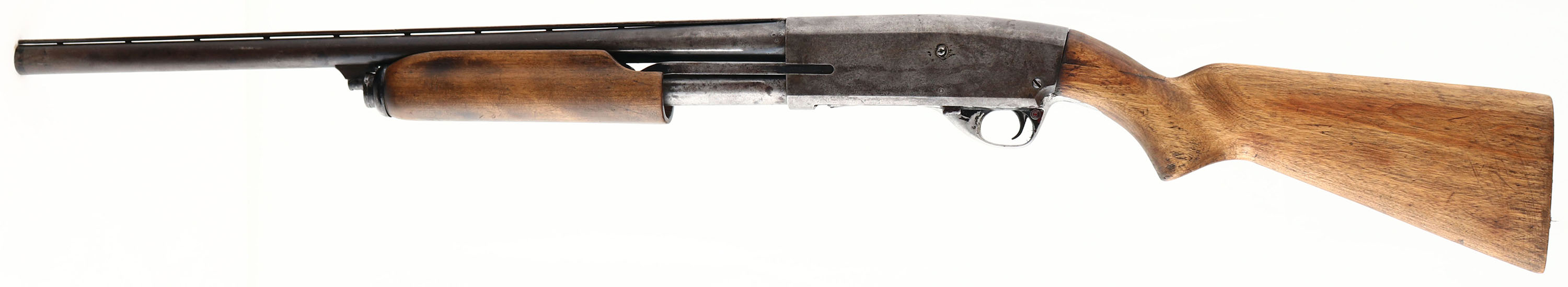 Western Auto (Savage), Model Revelation 300F, CAL: 12 GA, MFG: 1958-78, SN: None, Pump Action Shotgun, Choke CYL, 3'' Chamber, 23'' barrel. The original pistol grip wood stock & forend are fair and solid, displaying a many scrapes & scratches with no original finish left. The original metal has tone to a gun metal gray with speckling through out. Bore is very good. Ventilated rib barrel has no beads. Buttstock is missing buttplate. LOP: 13 3/4''. FFL Req. - Value: 100 to 200