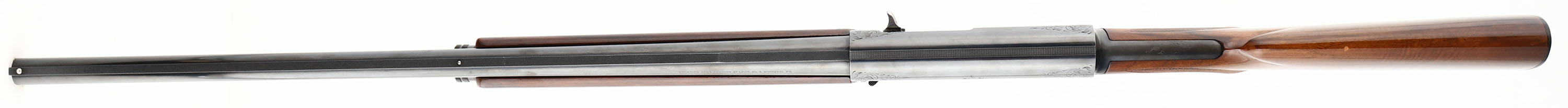 Browning, Model A5 Light Twelve, CAL: 12 GA, MFG: 1967, SN: 7G-94320, Belgium Made, Semi Auto Shotgun, 2 3/4'' chamber, MOD. Choke, 25'' Ventilated barrel. The original checkered & round knob pistol grip wood stocks are excellent, displaying very few light scratches or minor contusions to the original high gloss finish. The metal blue finish rates 95% overall & has been expertly and professional refinished, the receiver displays simple scroll, vine & border engravings. Bore is excellent & bright. The ventilated rib holds a single front bead & a mid rib bead. Buttstock carries a FN/Browning plastic buttplate. Gold trigger. 14 3/8'' LOP. An excellent example of an all original, high condition & collectible Light Twelve. FFL or C&R Req. - Value: 1000 to 2000