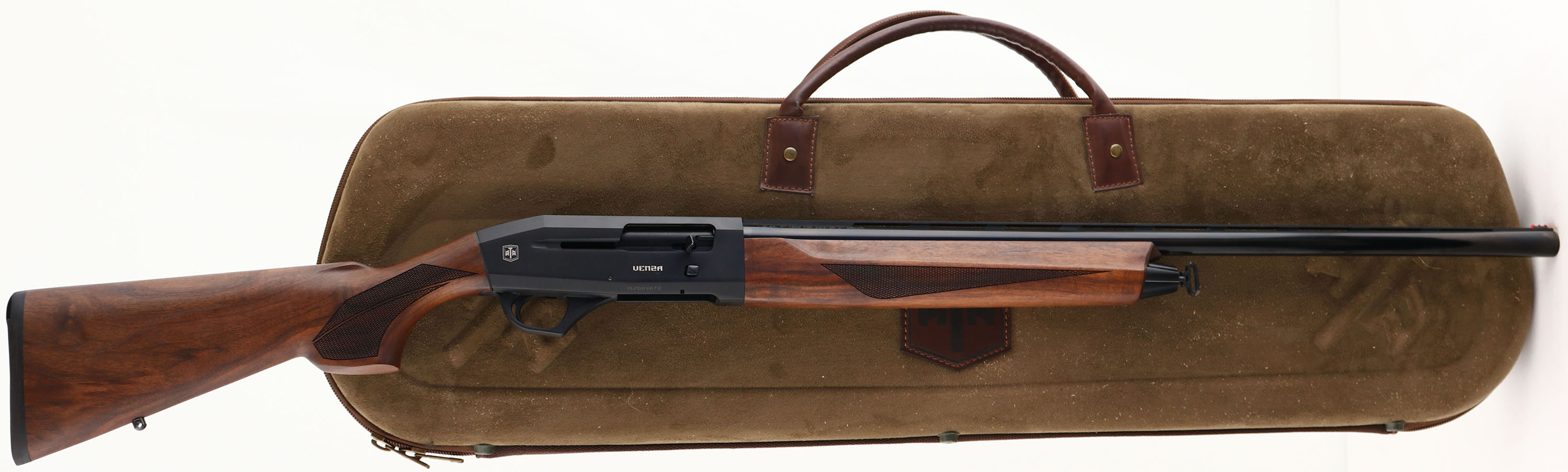 CASED, ATA, Venza 2-Barrel Set, CAL: 12GA, MFG: Modern, SN: 15/09670, Semi Auto Shotgun, 28 & 24'' smoothbore slug barrels. The checkered flat pistol stocks are excellent. The metal blue finish on the barrels rates 98% & the matte black finish on the receiver rates 99%. Bore on 28'' barrel is excellent & 24'' smoothbore slug barrel is good, but with scarring from slug use. 28'' barrel has red fiber optic rail front sight & the 24'' barrel has an adjustable fiber optic rear sight & elevated red fiber optic rail front sight. Comes in factory carrying case, with chokes & tool. FFL Req. - Value: 400 to 600
