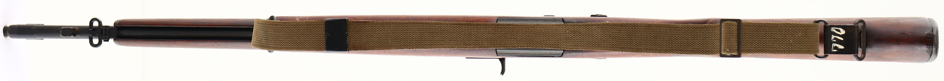 Springfield Armory, Model: M1 Garand, Cal: .30-06, MFG: 1942, S/N: 644226, Semi-auto Rifle, 24'' barrel. The semi-pistol grip walnut stock is excellent with almost no wear. Left side of stock above the trigger is marked with the US eagle below three stars in a box. Left cheek is marked ''RIA'', bottom of wrist is marked with two circle ''P'' firing proof marks, one is slightly worn/faded one is deep & clear. The parkerized metal finish rates 95% overall with light wear. Rear of receiver is marked ''U.S. RIFLE'', ''SPRINGFIELD'', ''ARMORY'', & S/N. right side of barrel is marked ''P'', ''S-A-10-50'', ''M''. Bore is excellent. It is bright & mirror like. Barrel holds a wide blade front sight with protective ears. & the rear of receiver holds a fully adjustable aperture rear sight. Stock carries a steel checkered trapdoor buttplate, with a oil bottle, pull through, & bore brush combo cleaning kit inside. Rifle has bottom sling loops with a forward stacking loop. Rifle comes with a period correct green canvas sling. This is a excellent example of the classic American battle rifle. FFL or C&R Req. - Value: 1500 to 3000