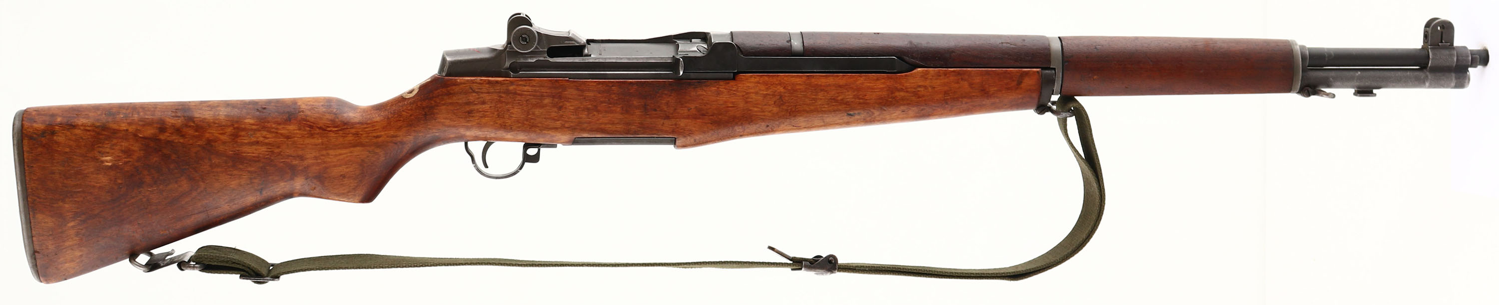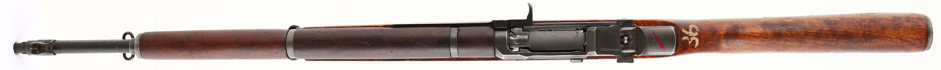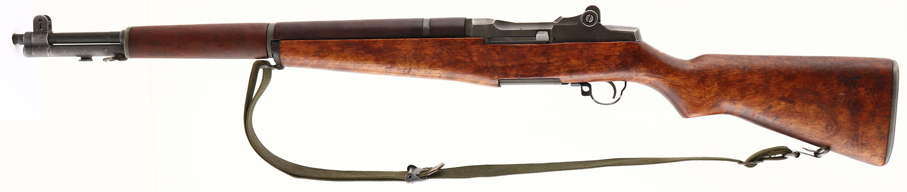 International Harvester, Model: M1 Garand, Cal: .30-06, MFG: 1954, S/N: 5179525, Semi-auto Rifle, 24'' Barrel. The semi-pistol grip walnut stock is excellent with only minor nicks & dings. Top of wrist is marked in white paint ''36''. Bottom of wrist is stamped with a ''P'' in a square firing proof mark. The parkerized metal finish rates 75% on the receiver with wear on the edges & light thinning. The barrels metal finish rates 90% with light wear in spots. The rear of the receiver is marked ''U.S. RIFLE'', ''CAL. .30 M1'', ''INTERNATIONAL'', ''HARVESTER''. The right side of the barrel under the operating rod is marked ''SA 6535448 2 65 Y75 P M''. There is a line of red paint added on top of the rear receiver markings. Bore is excellent, its bright & mirror like with almost no visible wear. The barrel holds a wide blade front sight with protective wings, & the rear of the receiver holds a fully adjustable aperture rear sight. The stock carries a checkered steel trapdoor buttplate that has a cleaning kit/oiler bottle inside. The stock has both bottom sling loops with the stacking swivel. International Harvester was one of the 2 company's along with the Springfield Armory that started back up production of new M1 Rifles for the Korean War. In 1945, International Harvester bought the former aircraft factory in Louisville Kentucky, and converted it for manufacture of farm implements and refrigeration and air conditioning units. They did produce vehicles for the military in WW2 like trucks, tractors, & Half-tracks, but they never made weapons for the military or the civilian market. One of the major reasons the government selected IH to produce rifles was its Geographic location. At this time almost all production of M1 rifles & military arms was done on the east coast & within a radius of 60 miles. With the dawn of the atomic age it would be very easy to wipe out almost all arms manufacture with a nuclear attack on the eastern seaboard, crippling the manufacture of military arms. So the military wanted to spread out its military arms production leading to them choosing International Harvester. International Harvester produced the least amount of M1's with a total production of just over 337,000 rifles produced from 1953-1956. out of the over 5.4 million M1 rifles made, this is a very small quantity making them rare & collectable today. FFL or C&R Req. - Value: 1500 to 3000