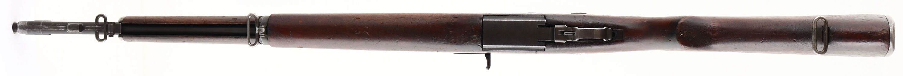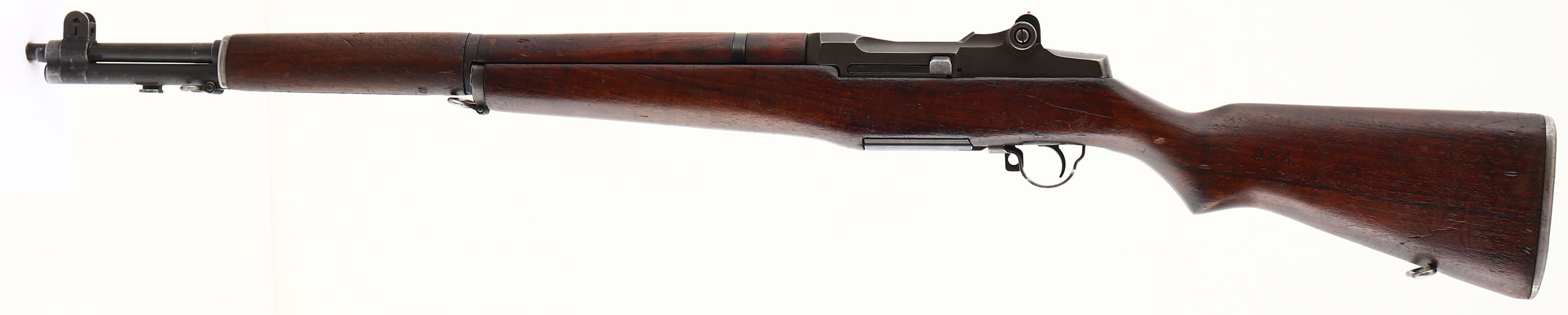 Harrington & Richardson, Model: M1 Garand, Cal: .30-06, MFG: 1954, S/N: 5616445, Semi-auto rifle, 24'' barrel. The semi-pistol grip black walnut stock is very good with nicks, dings, dents, scratches & wear from use/age. There is a ''R.R.A'' stamp in the left cheek meaning this rifle war rebuilt/refurbished after the war at the Red River Arsenal in Texarkana Texas. There is a half worn ''P'' in square proof on the bottom of the wrist. The parkerized metal finish on the receiver rates 90% with full coverage & just some light wear. The blued finish on the barrel rates 85% with some areas of thinning & wear. The top rear of receiver is marked ''U.S.RIFLE'', ''CAL. .30 M1'', ''H.&R. ARMS CO.'', & the S/N. the top of the bolt is marked with a drawing number, ''H.R.A'', & ''U.W.''. The right rear sight of the barrel is marked ''HRA 6535448 4-55 RS 51'', ''M'', ''X''. The bore is excellent. Its bright & mirror like with only minor wear. The barrel holds a wide blade front sight with protective wings, & the rear of the receiver has a fully adjustable aperture rear sight. The stock carries a checkered steel trapdoor buttplate with a oiler/grease bottle inside. Rifle has both sling loops with the third stacking swivel. A very nice example of a Korea war era M1 Garand. FFL or C&R Req. - Value: 1500 to 3000