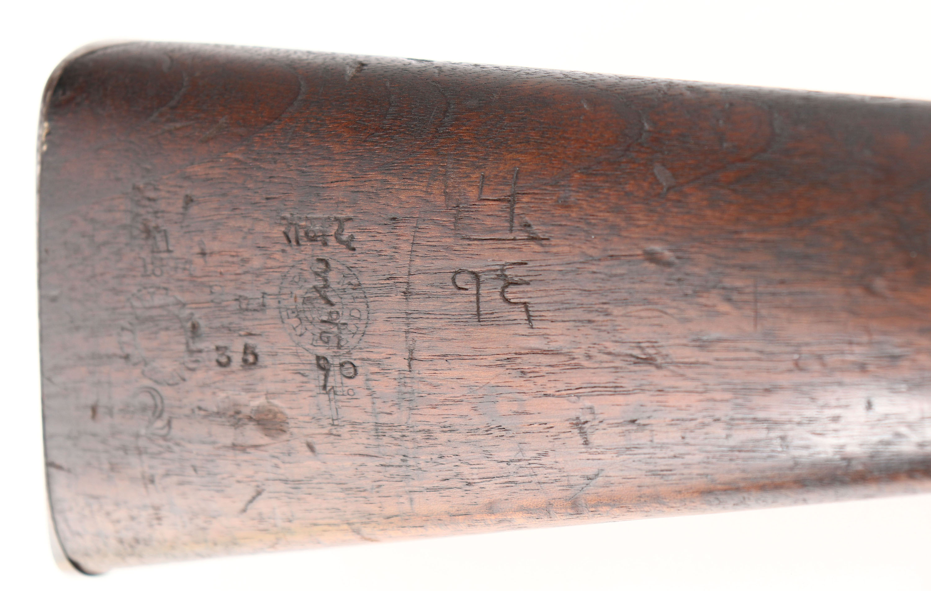 HISTORY: The Martini-Henry was developed to replace the old Snyder breech loader, muzzleloader conversion rifles they had before & would serve with the British until 1889 when they adopted the Lee-Metford Rifle (the predecessor to the lee-Enfield's). The Martini rifles would go through many different upgrades through the years, this one being a Mark 2, one of the earlier ones. When the new stock of Lee-Metford rifles started coming in, Britan started to sell off & give out its stock of the Martini rifles to its Colonies like Australia, New Zealand, Canada, & especially India & Nepal, they would receive the majority of the old stockpiles, with the other country's martinis they received going to them later once they got better weapons. The markings on the stock & barrel, confirms it was given to Nepal as aid in 1894 & that's where it stayed until it sold on the US market.