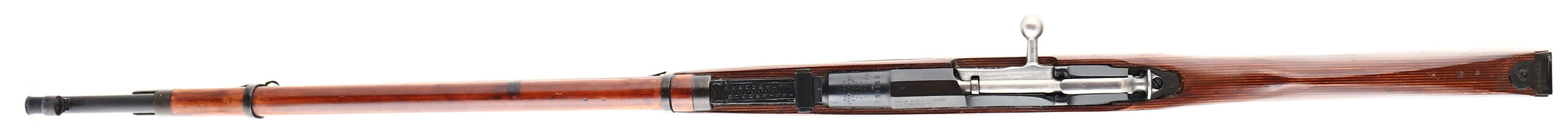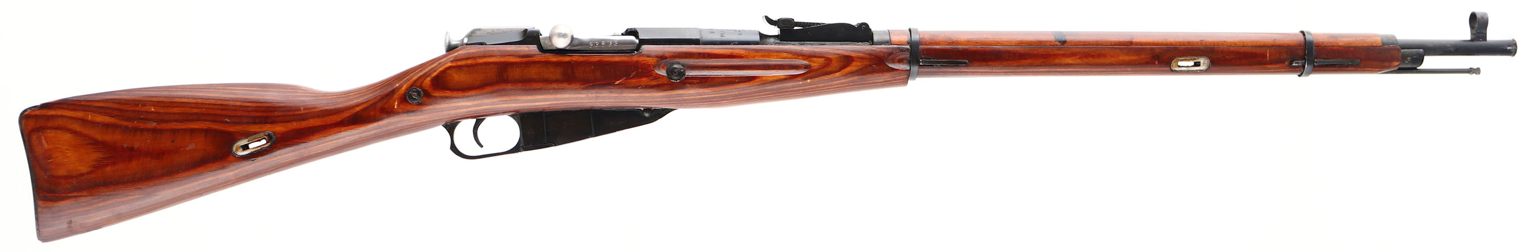 Tula, Model: M91/30 Ex-Dragoon, Cal: 7.62x54mmR, MFG: 1925, S/N: 9130470123 (59252 on barrel), bolt action rifle, 28 1/2'' barrel. The straight wrist, laminated wood stock is excellent as being very lighted sanded & oiled. Stock has a few small nicks, dings, dents, & scratches. Laminated stock were typically used as replacement stock after the war on refurbished rifles, which this rifle appears to have been refurbished after the war. The metal appears to have been re-blued at some point, most likely when is was re-furbished after the war. The Re-blued metal finish rates 95% overall. The top of the barrel is marred with the Tula star with 3 smaller circles around it, has the typical lines of writing in Russian that's found on Tula barrels from 1924-26. FFL or C&R Req - Value: 250 to 500