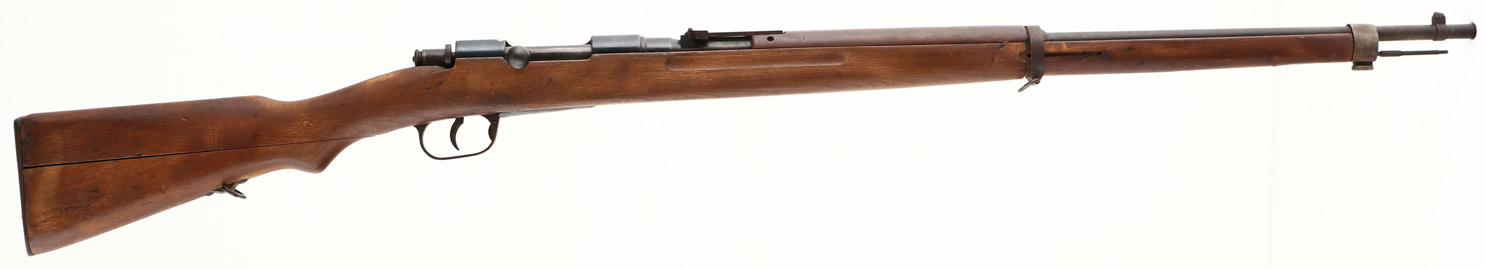 Fabrica Nationale D'Armi Di Brescia, Model: Type I Rifle, Cal: 6.5x50mmR, MFG: 1938-39, S/N: H999, Bolt action rifle, 31'' barrel. The consigner states that this is a vet bring back rifle from WW2 and it came back with the bayonet & sling. The semi-pistol grip wood stock is very good as being lightly sanded & oiled. There are no visible cartouches on the stock. The rear barrel band retention spring is missing. The blued metal finish on the barrel has toned mostly to a brown patina with spots of original blue showing in spots. The blued metal finish on the receiver rates 60% with spots of deep original blue & spots of speckled brown patina. The only marking on the rifle is the S/N on the left side of the barrel. The bore is very good. Its beginning to darken with strong rifling. Barrel holds a barleycorn front sight with a ladder V-notch rear sight marked 5 to 24. the stock carries a steel buttplate, that's toned to a brown patina with spots of rust. The rifle has both bottom sling loops & has its cleaning rod. Rifle comes with a Toyoda Jidoshoki Seisakusho, under Nagoya supervision, type 30 bayonet & a leather type 38 Sling that has Japanese markings. Italian made rifle for the Japanese navy, made between 1938-39. these were made because all rifle manufactures in Japan were tied up making rifles for the army. Uses the Carcano action but everything else is like a type 38 Arisaka. FFL or C&R Req. - Value: 150 to 300