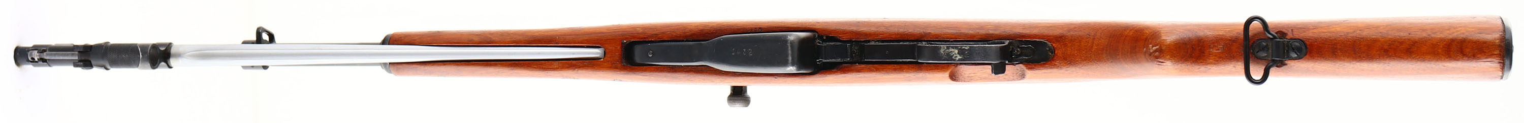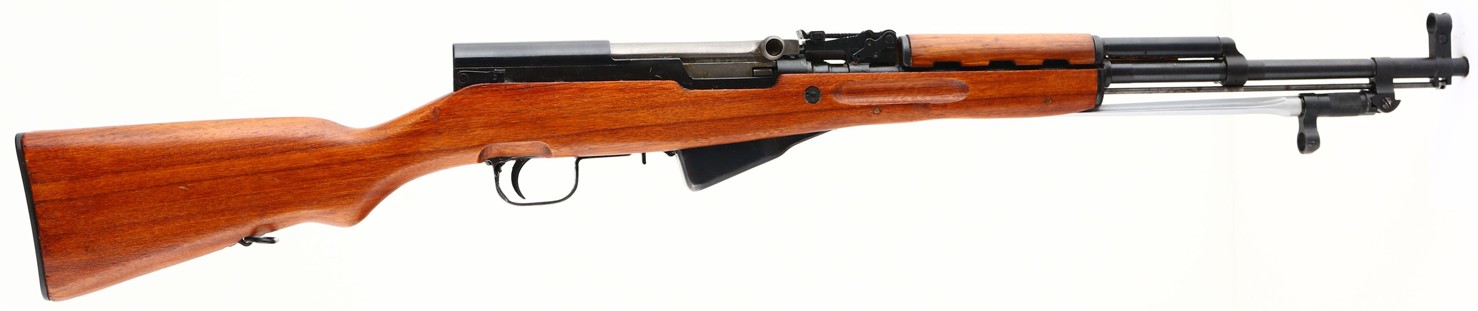 Chinese Factory 0147, Model: Type 56, Cal: 7.62x39, MFG: 1976, S/N: 21001432, Semi-auto Rifle, 20 1/2'' Barrel. The semi-Pistol grip wood stock is excellent with little to no wear, Chinese lettering in circle cartouche on bottom of stock behind wrist. The metal finish rates 98% on the barrel, & rates 95% on the receiver with minor scratches, still has original grease (Cosmoline) from the factory inside the action & in between the barrel & gas tube. Left side of receiver is marked with ''TYPE 56 CARBINE'' in Chinese, ''0147'' in rectangle factory stamp, S/N, ''C'', & importer marks, Bolt & magazine are S/N matched. Bore is Excellent, bright & mirror like. Hooded post front sight, tangent U-notch rear sight marked 1 to 10. Steel trapdoor Butt plate with full cleaning kit inside, Butt plate has scratches & wear. One bottom & one side sling mount. FFL Req. - Value: 400 to 800