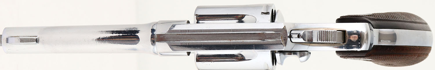 Colt Police Positive Special - 3rd Issue, CAL: 38 SPL, MFG: 1959, SN: 736360, Double Action Revolver, 4'' barrel. The Colt logo medallion grips are excellent, with minor scrapes & dings. The nickel finish is excellent, rating appx 98% overall, with visible brush/polishing lines throughout. Bore is excellent, with frosting in the creases of the lands & grooves. Integral square notch rear sight & serrated blade front sight. A nice example of a nickeled 3rd Issue Police Positive Special. FFL or C&R Req. - Value: 500 to 800