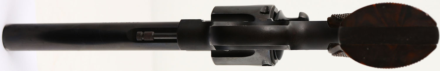 Colt, Officer's Model Special, CAL: 22LR, MFG: 1951, SN: 62833, Double Action Revolver, 6'' barrel. The Colt logo medallion checkered plastic grips are excellent. The metal blue finish rates 95% overall on the areas with high-polish blue. The matte top/back/front strap have consistent spotting/speckling, toned to a brown patina. The sides of the hammer has toned to a brown patina. Bore is excellent, with minor visible wear. Coltmaster adjustable rear sight & ramp elevated serrated pinned blade front sight. FFL or C&R Req. - Value: 500 to 1000