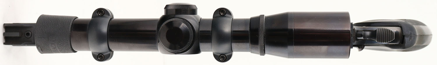 Custom, Colt, Police Positive Special or Detective Special Frame, CAL: 32, MFG: 1975, SN: M21482, Double Action Revolver, 9'' barrel w/ BO-MAR rib. The Colt logo medallion checkered rubber grips are excellent. The metal blue finish on the barrel rates 99%, & the frame rates 99%. There is some minimal discoloration of blue on the barrel. Bore is excellent. Adjustable rear sight & winged blade front sight. The revolver carries a 3x Burris scope, optic glass is clear. Trigger shoe added. Spur hammer. A nicely customized Colt revolver for target shooting. FFL Req. - Value: 700 to 1400