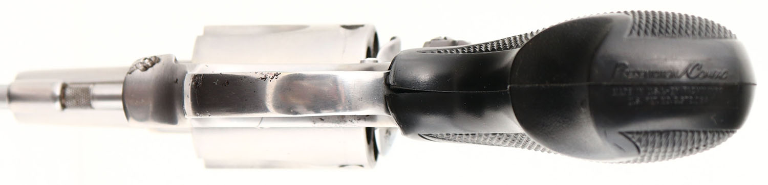 Smith & Wesson, Model 60, CAL: 38 SPL, MFG: 1979-80, SN: R247353, Double Action Revolver, 1 7/8'' barrel. The Pachmayr checkered hard rubber grips are excellent. The stainless steel finish is very good, with intermittent pitting concentrated to the right side of the frame, trigger guard & a small area on the cylinder. Bore is excellent. Integral square notch rear sight & blade front sight. FFL Req. - Value: 250 to 450