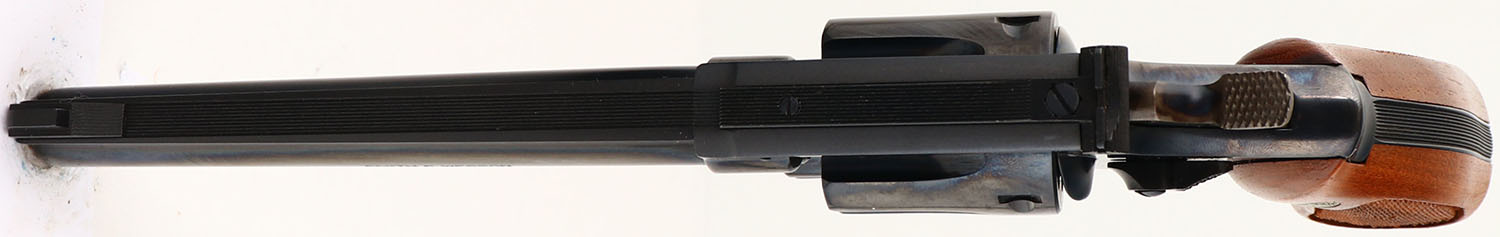 BOXED, Smith & Wesson, Model 48, CAL: 22 MRF, MFG: 1974, SN: 5K91522, Double Action Revolver, 6'' barrel. The S&W logo medallion checkered wood grips are excellent. The original metal blue finish rates 99%+ overall. The case-hardened trigger & hammer retain excellent case-colors. Bore is mint. Adjustable rear sight & serrated blade front sight. Comes in SN matching box, with related paperwork, cleaning brush/rod & original packaging. FFL or C&R Req. - Value: 1000 to 1500