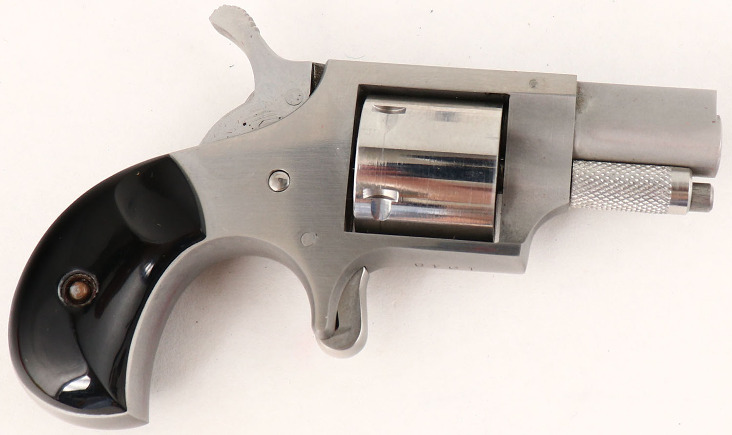 CASED, Rocky Mountain Arms Corp., Casull Model A225, CAL: 22 SHORT, MFG: Modern, SN: 1948, Single Action Revolver, 1 3/16'' barrel. The synthetic black grips are excellent. The two-tone stainless steel finish is excellent. Bore is excellent. Integral rear sight. Comes with factory case, outer cardboard sleeve & owners manual. FFL Req. - Value: 100 to 200