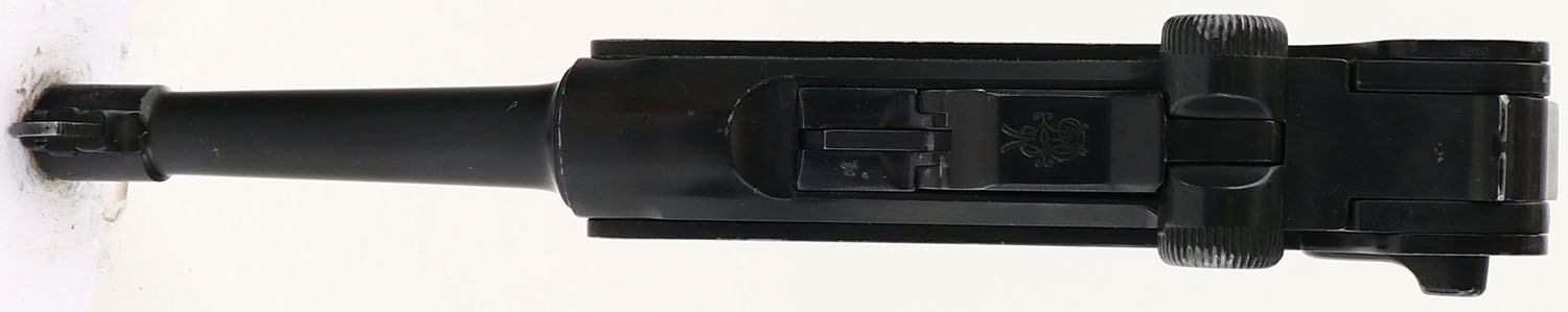Erma-Werke, Model: La 22, Cal: .22 LR, MFG: 1964-67, S/N: 30738, Semi-auto pistol, 4 5/8'' barrel. The checkered wood grips are very good with light scuffs & wear. The blued metal finish rates 80% with holster wear & other spots of thinning/wear. The left side of the frame is marked with proof marks, the S/N, & ''ERMA La 22''. The right side of the frame is marked ''MADE IN GERMANY cal. 22 LR.''. The bore is excellent. Its bright & mirror like with little to no wear. The barrel holds a tall barleycorn front sight, with a U-notch rear sight. Pistol comes with one mag. FFL or C&R Req. - Value: 250 to 500