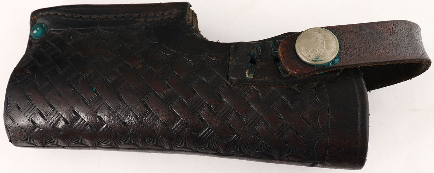 CONDITION: The checkered wood panel grips are very good with use wear & light oil stains. The blued metal finish retains about full coverage with areas of thinning, & as so rates 80%. The left side of the slide is marked ''-7.65 MODEL AUTOMATIC PISTOL-'', ''-VICTOR BERNE EIBAR-'', & the S/N. the left side of the frame is marked with the S/N, ''FEU'', & a ''V.B'' in a circle the left side of the barrel is marked ''211'', & the bottom of the barrel is marked ''315''. The bore is good. Its bright with worn rifling. The slide has a blade front sight with a V-notch rear sight. Pistol comes with the original mag marked with the S/N & ''V.B'' in a circle. Pistol comes with a leather holster that has the Smith & Wesson logo on the back. FFL or C&R Req. - Value: 200 to 400
