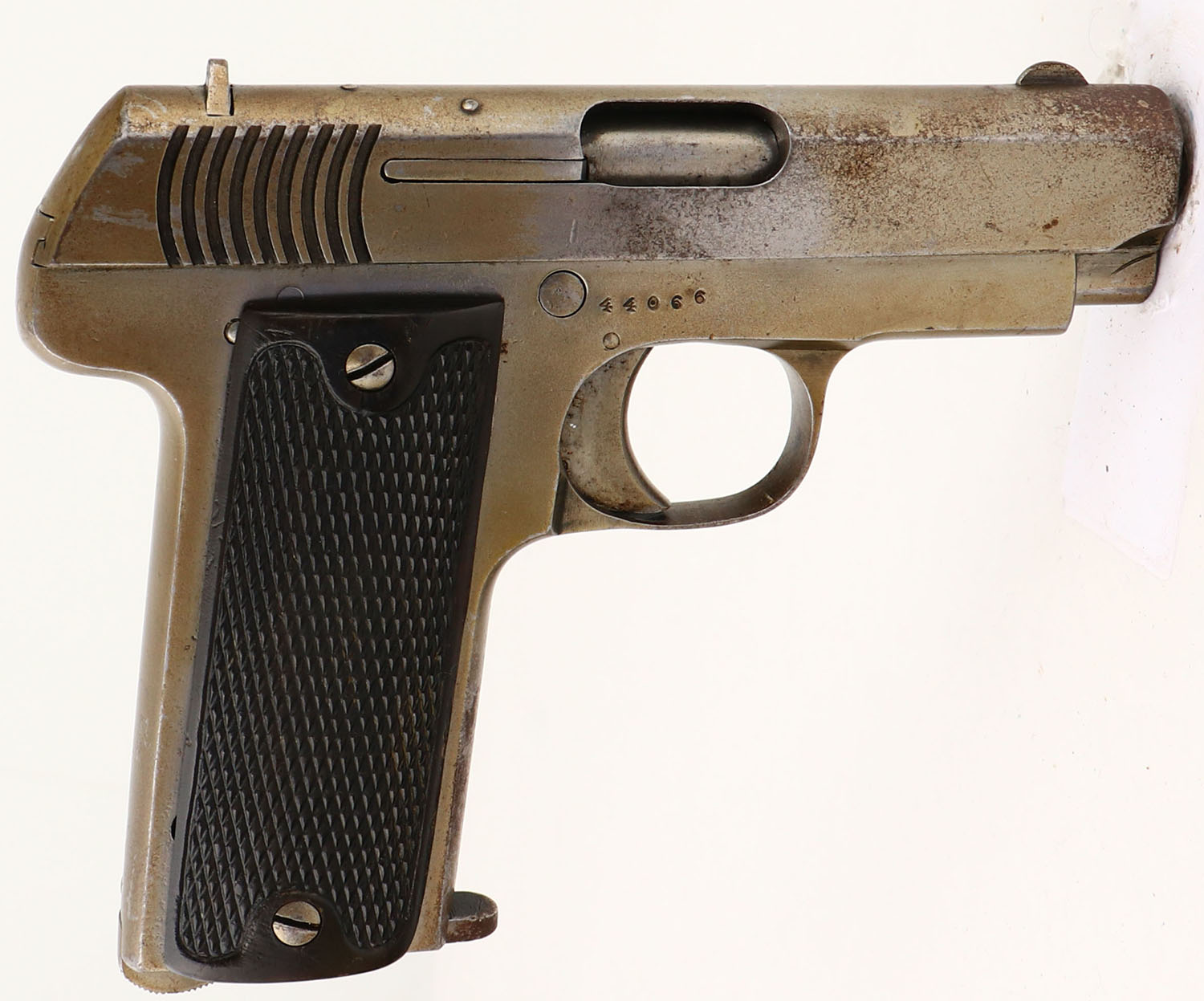 HISTORY: At the beginning of WW1 France would increase its military size by 2.9 million men, creating a massive strain to arm & supply those same men. The standard issue pistol for France at that time was the 1892 Ordnance revolver. Even with production of this revolver starting in 1892, the French government soon realized that the stockpile & production capacity for this revolver was not going to be enough. As a stop gap for this problem they started to bring out the older model pistols from storage for use with rear line troops, guy who wont really be shooting their guns much but still needed to be armed, and gave the newer pistols to the front line. At the same time France had the manufacture of the 1892 switch to full rifle & machine gun production, as they were in even greater need. Even with the older pistols in use the demand for pistol was continually growing & France would need more, FAST. At this time Spain was on of the largest manufactures of cheap civilian firearms in Europe. One of the copy's Spanish gun manufactures were making was a copy of the Colt made, browning design, Colt 1903 browning hammerless pocket pistol. France would soon notice the copy's made by Gabilondo y Urresti of Guernica, their trade name for the pistols was Ruby. This pistol made by Gabionade would be adopted by France and they contract for them to make 10,000 pistols a month, this would be upped to 30,000 pistols a month by the third quarter of 1915. this amount of pistols would be too much for Gabilondo to produce so they would turn to other manufactures in Spain to help fill the numbers. Gabilondo was to receive all the guns and check them for serviceability, then send them along to France. Soon other company's would catch on to Frances need for pistols & would start selling their pistols to France. The quality of the pistols would vary drastically, with some being excellent to some being down right unsafe to fire. Anyone looking to shoot a original ruby pistol should have it inspected by a gunsmith before firing.