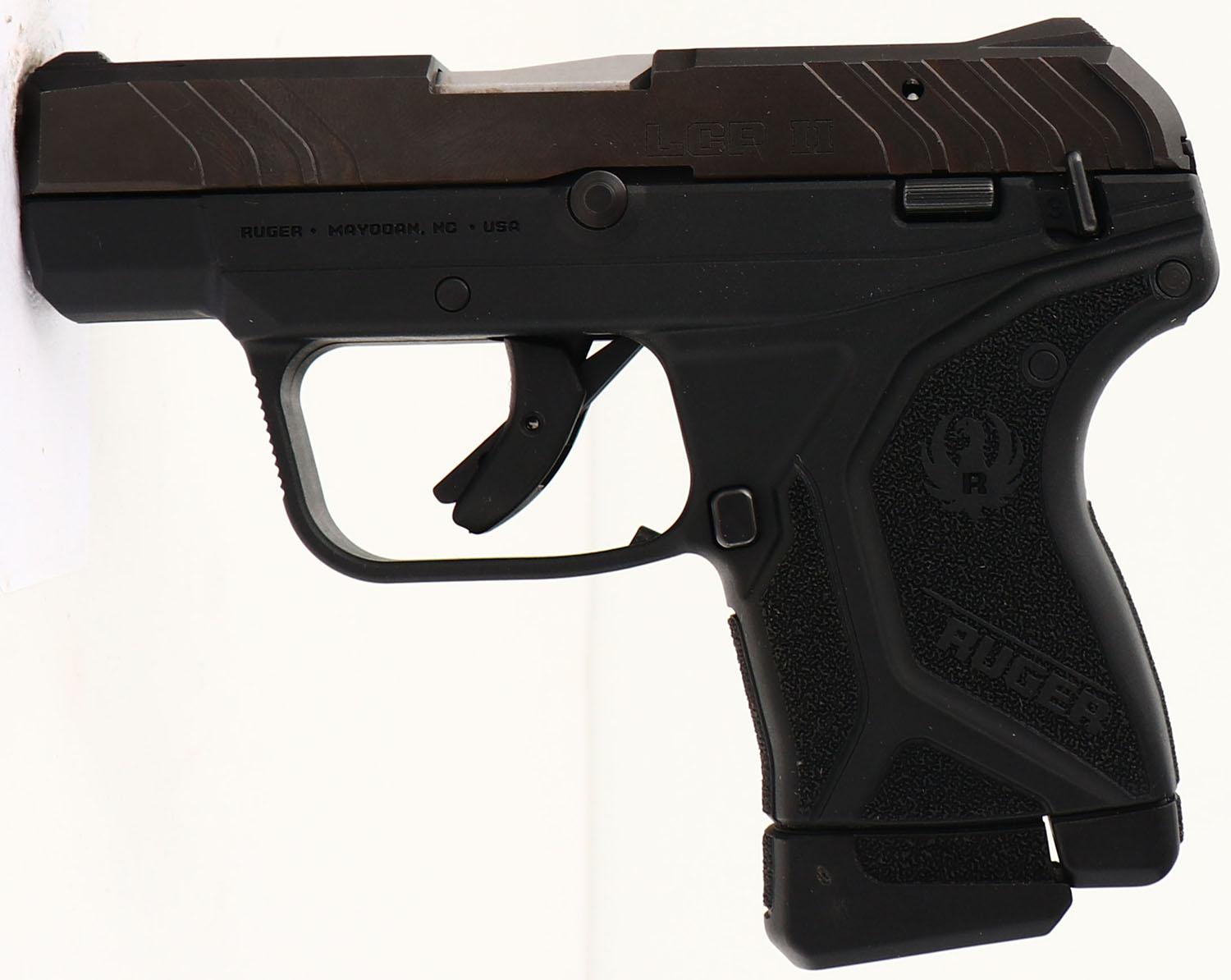 Ruger, LCP II, CAL: .22LR, MFG: Modern, SN: 380750737, Semi Auto Pistol, 2 3/4'' barrel. The Ruger textured polymer grip frame is excellent. The blued finish on the slide has 99% coverage, but is beginning to tone to a brown patina. Bore is excellent. Factory square notch rear sight & serrated blade front sight. FFL Req. - Value: 250 to 400
