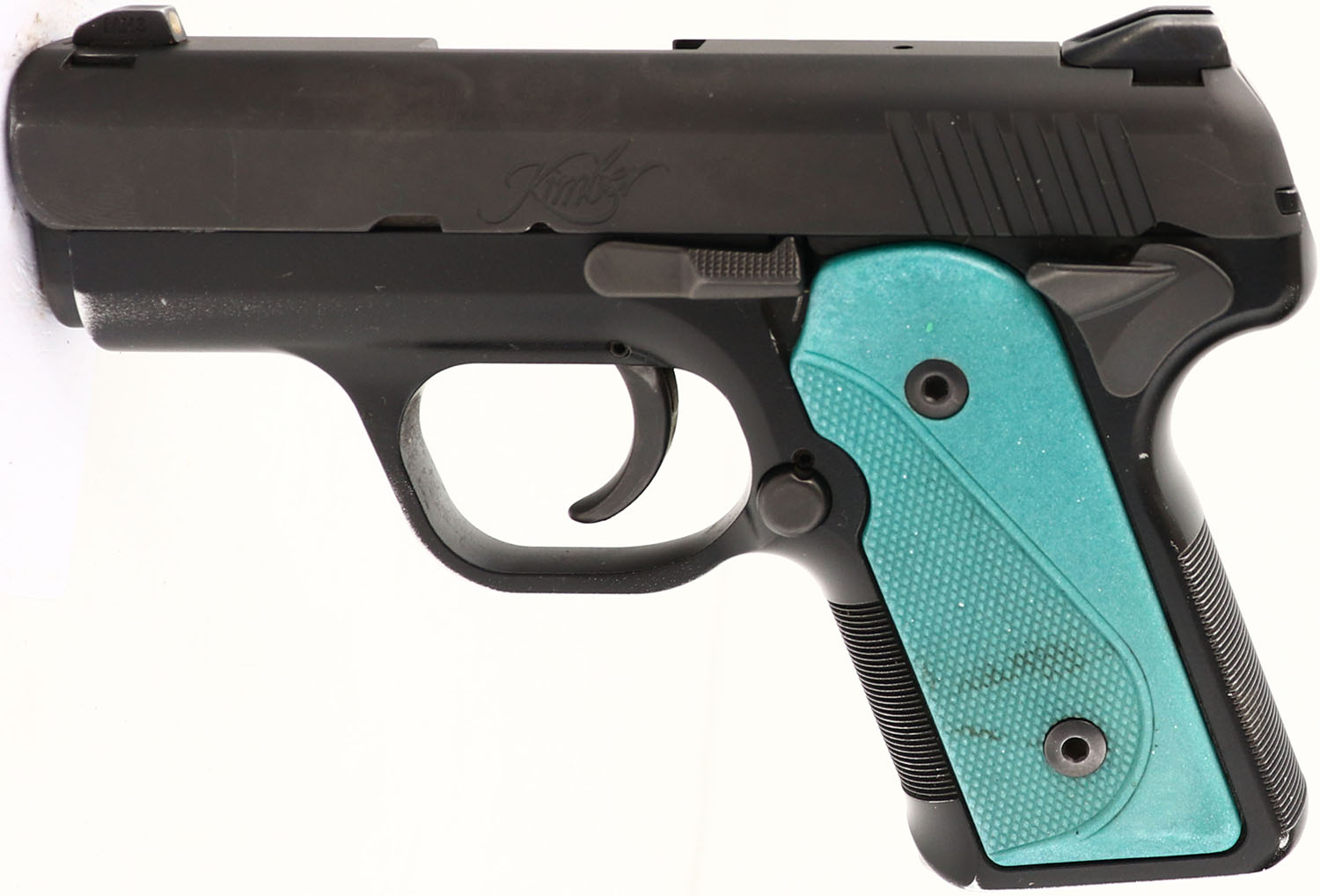 Kimber, Solo Carry DC, CAL: 9mm, MFG: Modern, SN: S1146427, Semi Auto Pistol, 2 3/4'' barrel. The replacement turquoise grips are excellent. There are handling marks & a couple areas of discoloration in the checkering. The matte gray finish on the slide rates 97% & the matte black finish on the frame rates 90%. Bore is excellent, with frosting or haze in the lands & grooves. Serrated front & back strap. A good option for a conceal carry pistol. FFL Req. - Value: 350 to 550