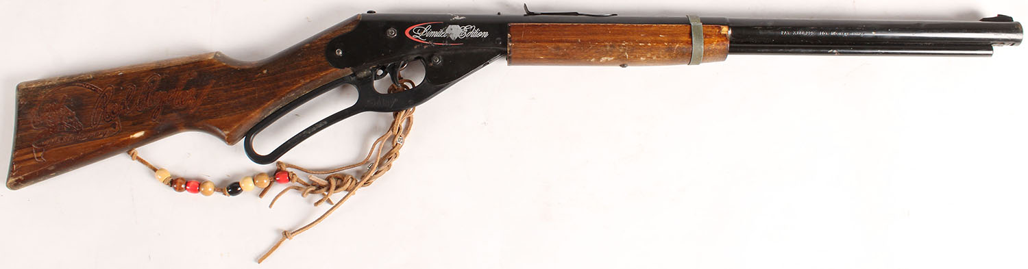 Daisy, Model 1938B BB/.175 cal. Wood stocks are good with many nicks & dings with Red Rider carved into right side, right side of receiver is marked LIMITED EDITION, metal is 70% with scratches. - Value: 10 to 50