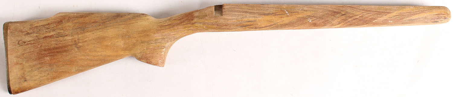 Remington Unknown bolt take-off model, flat pistol grip, cheeked, Monte Carlo stock. Has original finish removed & is rough requiring final sanding before finishing. Has original Remington grooved plastic buttplate. No cracks or breaks. Overall, very good refinish project & replacement stock. - Value: 10 to 50