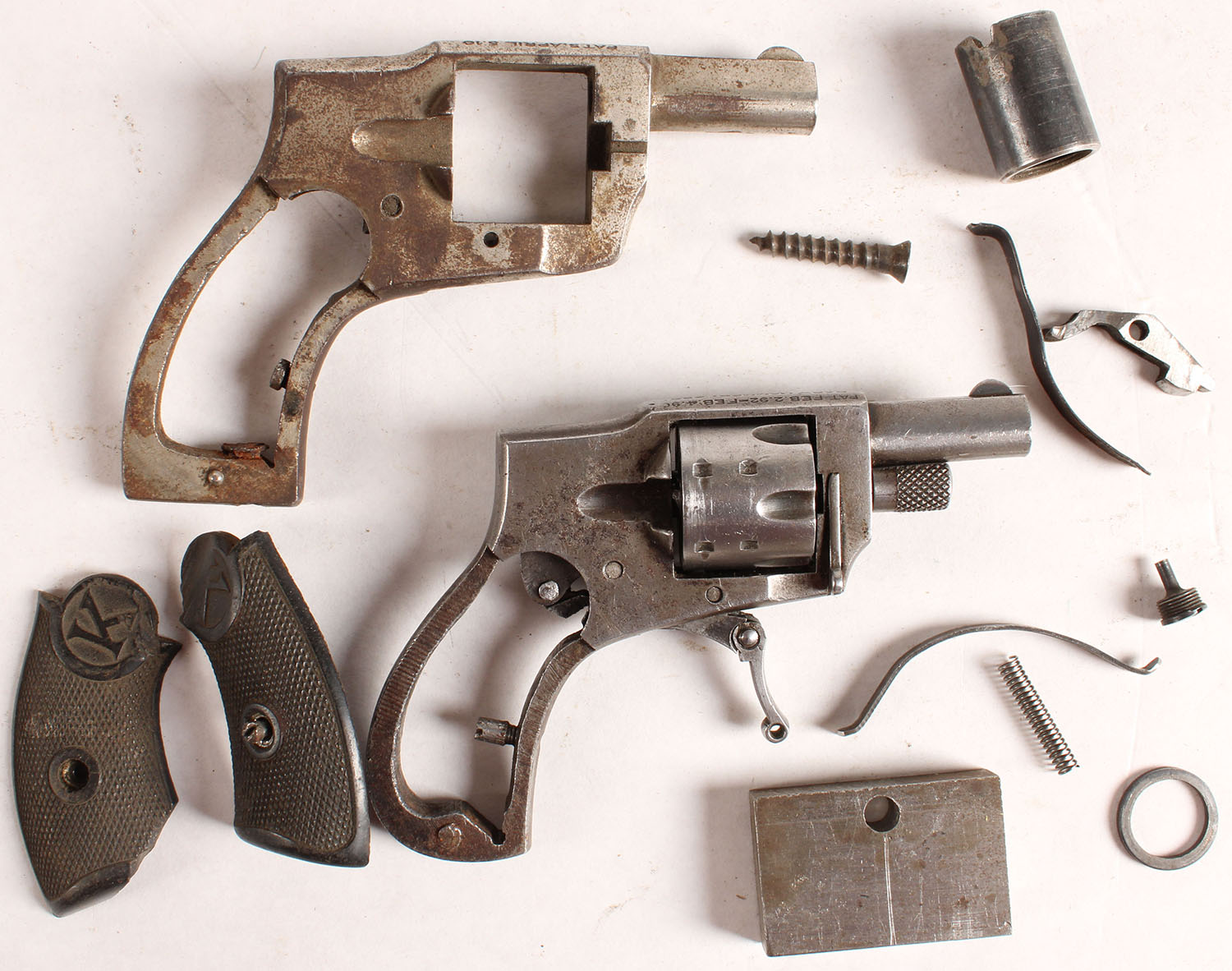 Lot of two Kolb Baby Hammerless Pistols, one Model 1910, & one New Model. Both pistols do not function properly & are missing parts. Both bores are fair. Being sold ''AS-IS'' with NO RETURNS ACCEPTED. Lot also comes with some additions parts for these pistols. FFL or C&R Req. - Value: 20 to 100