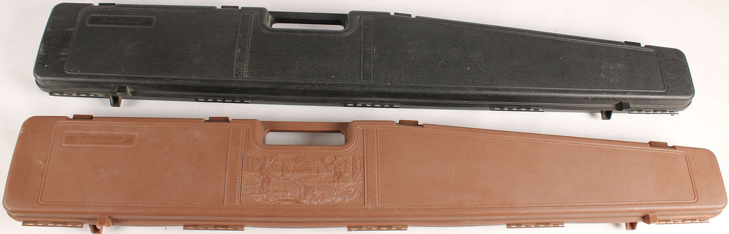 Lot of two hard plastic pointed gun cases, one black, one brown. 50'' x8''. Very good overall - Value: 10 to 50