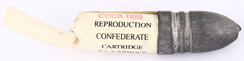 CCCA 1993 Reproduction Confederate Cartridge F.J. Gardner C.S.A PAT. No. 12, AUG. 17 1861. White paper. Grade: Very Good ++ - Value: 20 to 60