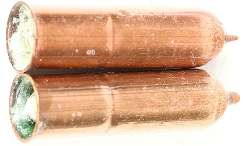 Lot of 2 .32 National Teatfire. HNS. One round teat and one flat teat. Copper case. Grade: Very Good ++ - Value: 20 to 40