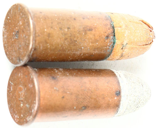 Lot of 2. 56-52 Spencer. (1) HS:''raised H'', Semi point Lead. (1) HS:''impressed H'', salmon colored paper sabot SHOT load. Grade: Very Good - Value: 50 to 75