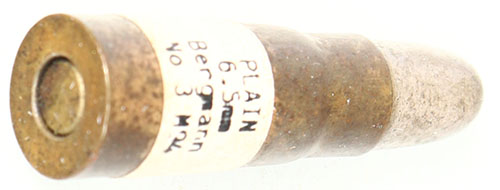 6.5mm Bergmann #3, Mdl 1894. NHS. RN CN FMJ. Rimless grooveless. Grade: Excellent - Value: 20 to 40