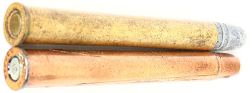 Lot of 2. 9.3x72mmR. (1) HS:''D 9.3x72 NORM'', FN Lead. (1) HS:''DWM 9.3x72R'', FN CJ SP, Copper wash steel case, World War II issue. Grade: Very Good + - Value: 2 to 60
