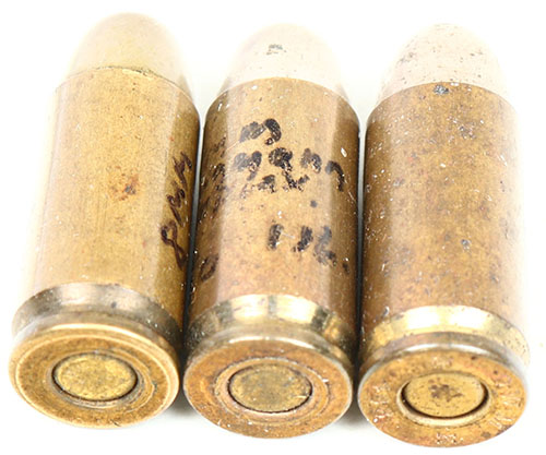 Lot of 3. 8mm Bergmann Simplex. (1) HS:''DWM K 488 K''. (1) NHS. (1) HS=Indeterminate. All are RN CN FMJ. Grade: Very Good ++ - Value: 30 to 60