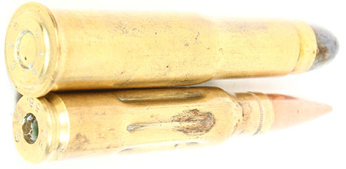 Lot of 2, (1) II Crown (sharps emblem) 1887 .44-77 sharps (this is the 2 1/4 inch sharps bottlenecked case introduced about 1875.) (1) FA 58 7.62 Nato Blank. Grade: Very Good ++ - Value: 2 to 40