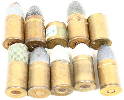 | Lot of 10. .450 Revolver. Ball Loads: 4 by Kynoch, 2 by Eley,...