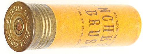 H/S= ''Winchester No. 12 Repeater'' 2 1/2'' OAL, Winchester Brush on side of shell, loaded yellow paper case. Grade: Very Good ++ - Value: 10 to 60