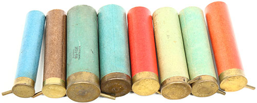 Lot of 8 Pinfire, empty paper cases, mixed gauges. Grade: Excellent - Value: 10 to 50