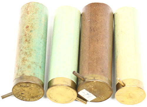 | Lot of 4 Pinfire paper shotshells, mixed gauges, 2 1/2'' OAL, ...