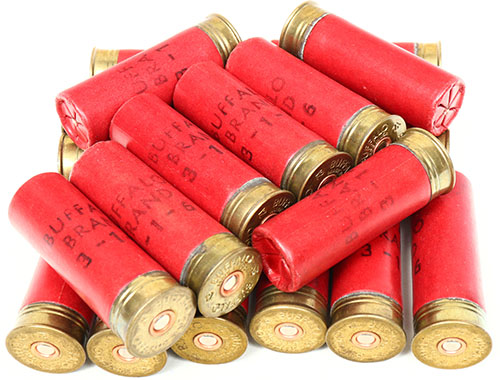 Large lot of Buffalo Brand, 12ga, loaded paper shotshells, 2 3/8'' OAL, all solid. Grade: Excellent - Value: 10 to 50