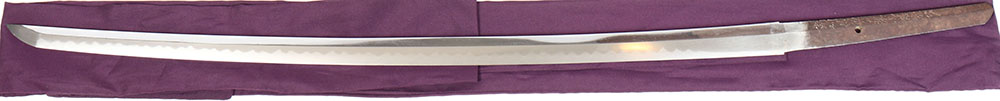 Antique Japanese Katana in beautiful condition, 37 1/2'' overall and 27'' cutting edge, Mounted in Shira saya - storage sheath, made from Japanese Magnolia wood. This particular sheath contains Sayagaki - Japanese inscriptions written on outside edge of sheath, not seen very frequently which usually contains information on who made, where made, and other information such as age of the blade within. This blade contains signatures and inscriptions on both side of the Nakago - tang, some of which has been translated with swordsmith's name as: Bishu Osafune ju Yokoyama Sukemune Saku. This Katana is in very good polish displaying vivid forging grain in the steel throughout the length of the blade. A beautiful, flowing, wavy Hamon - temper line, that clearly shows Nie and Nioi - crystallization within the metal along the edge of the Hamon, typically visible only on higher quality Japanese swords, The Hamon continues to be visible at the tip of the blade, a mark of an excellent tempering and polishing processes. Polisher's marks are visible under Habaki and at the Kissaki - tip of blade. The Habaki - metal collar around the blade above the tang that holds the blade securely in the scabbard, is two-piece copper with Shakudo - ''raven copper'' a shining black patina consisting of gold and copper. This Katana appears to be a Bizen province blade and dated 1865-1870. If you would like to preview these you will need to make an appointment before hand. - Value: 6000 to 10000