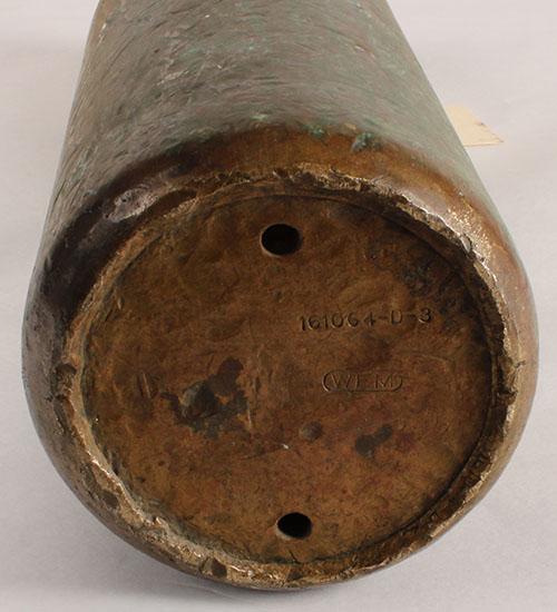 US, 120mm projectile, marked on the bottom, ''161064-D-3'', ''WEM'' in a box. OAL: 18 1/2''. VERY HEAVY WILL BE EXPENSIVE TO SHIP. Grade: Very Good - Value: 10 to 100