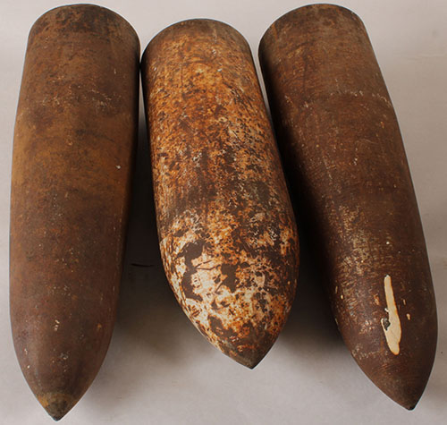 Lot of three Military projectiles, VERY HEAVY WILL BE EXPENSIVE TO SHIP. Grade: Very Good - Value: 10 to 100