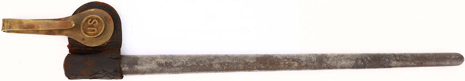 US, Springfield Trapdoor bayonet sheath & frog, sheath has rust & wear, leather is worn & has tears. Grade: Good + - Value: 20 to 60