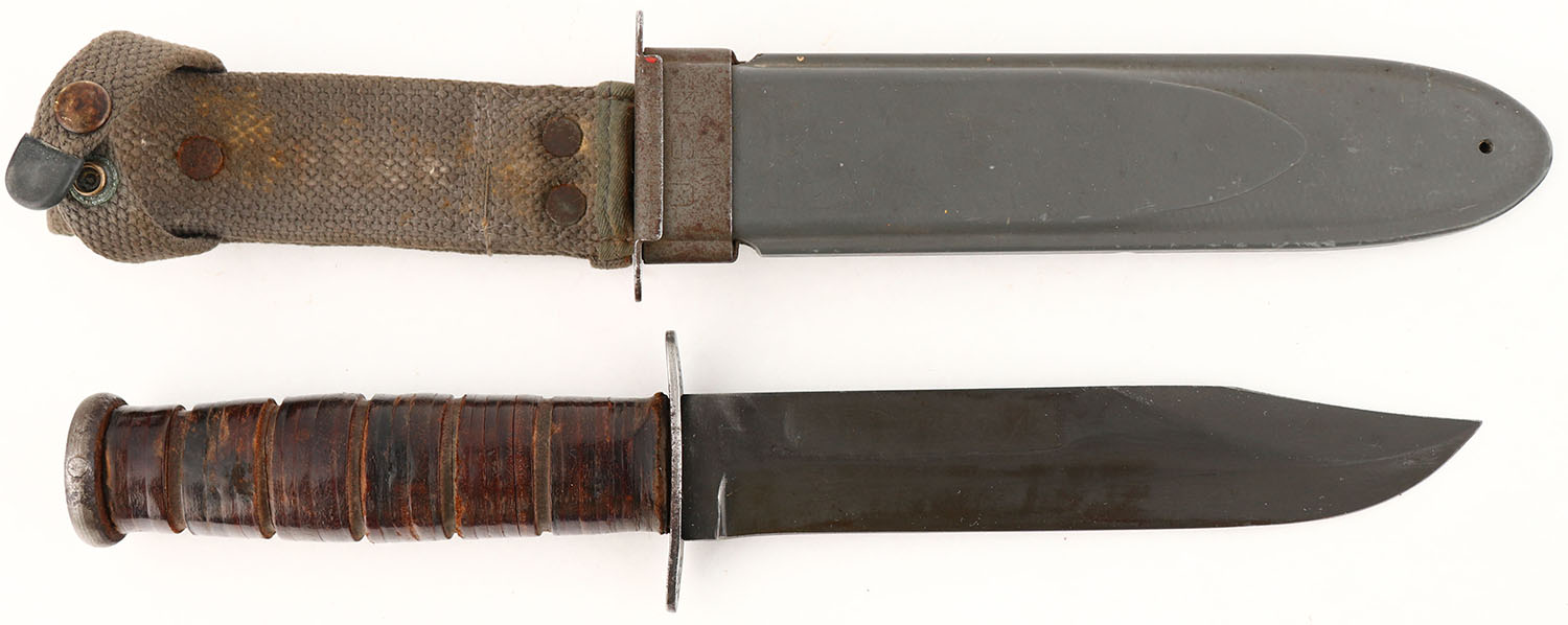 | US, KA-BAR (Union Cutlery), USN MK2 knife & sheath. Blade has l...