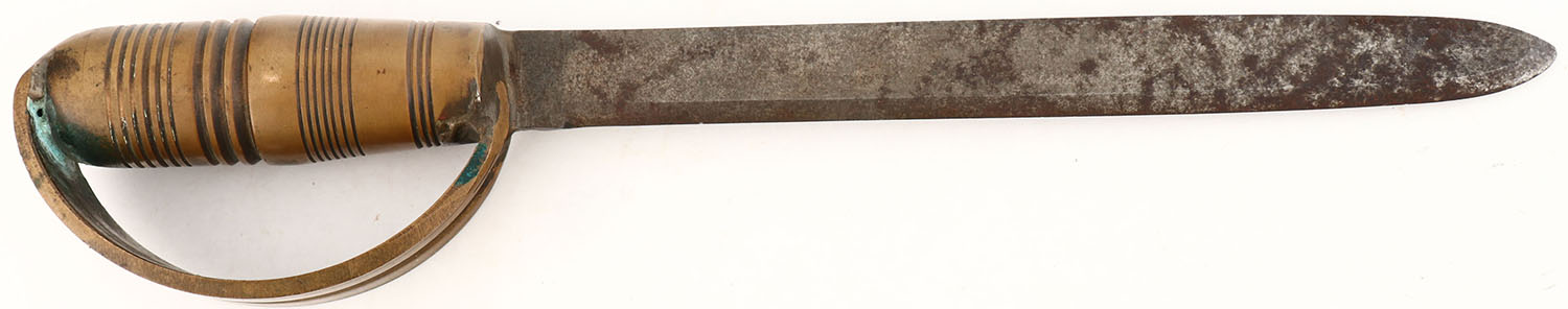 US, Theater made fighting knife, has a large blade with a heavy brass handle. Both has spots of patina & corrosion. Grade: Very Good - Value: 20 to 40
