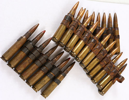 large lot of linked .50 BMG, mix of live & dummies. Ammo ranges from very good to good. Grade: Very Good + - Value: 20 to 100