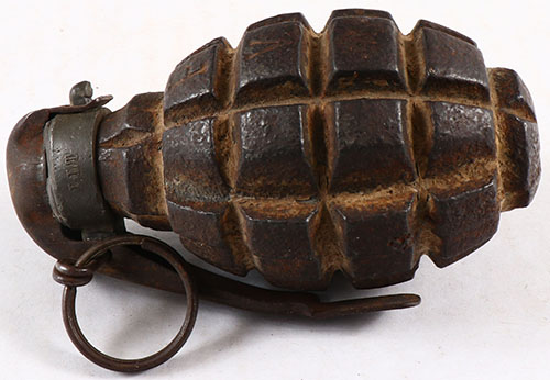 French, F1 (196B) Grenade, WW1 era, metal is toned brown with spots of rust. Grade: Very Good - Value: 200 to 400