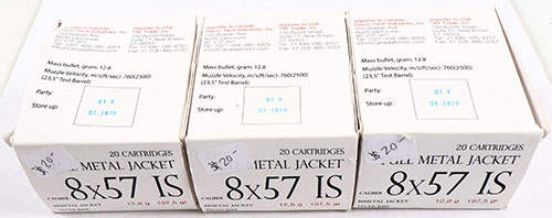 | Lot of three, Russian, 8x57 IS (8mm Mauser), 20 Rd. boxes, all f...
